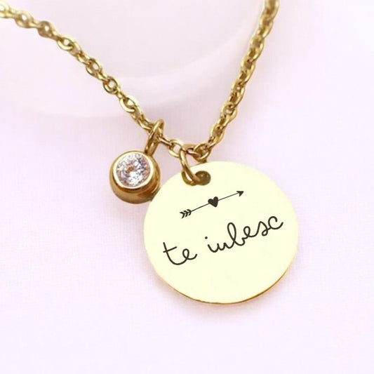 Colier de lux - Pandantiv zirconiu pe lanț - Te iubesc