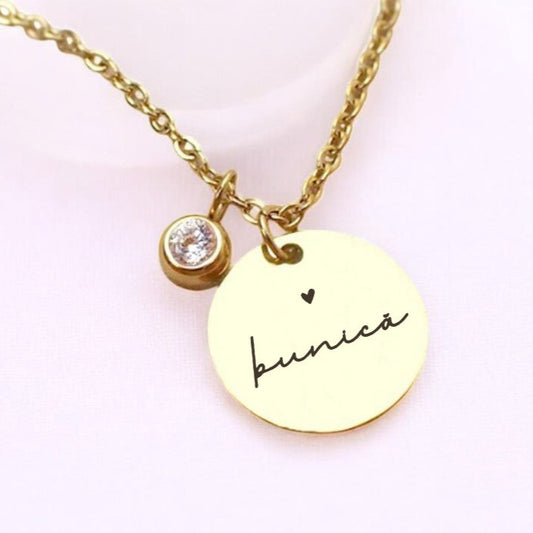 Colier de lux - Pandantiv Zircon pe lanț - Cu text personalizat
